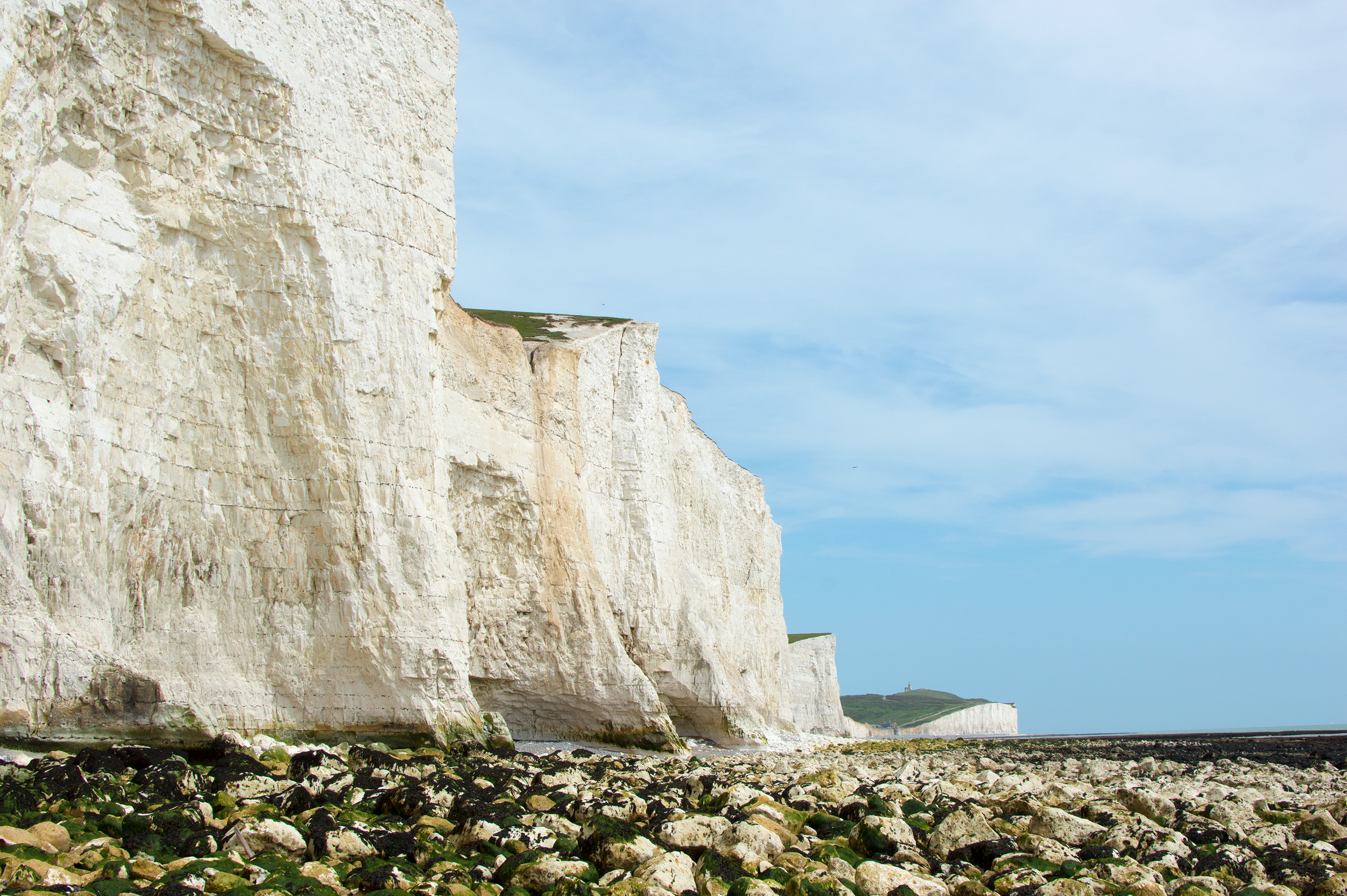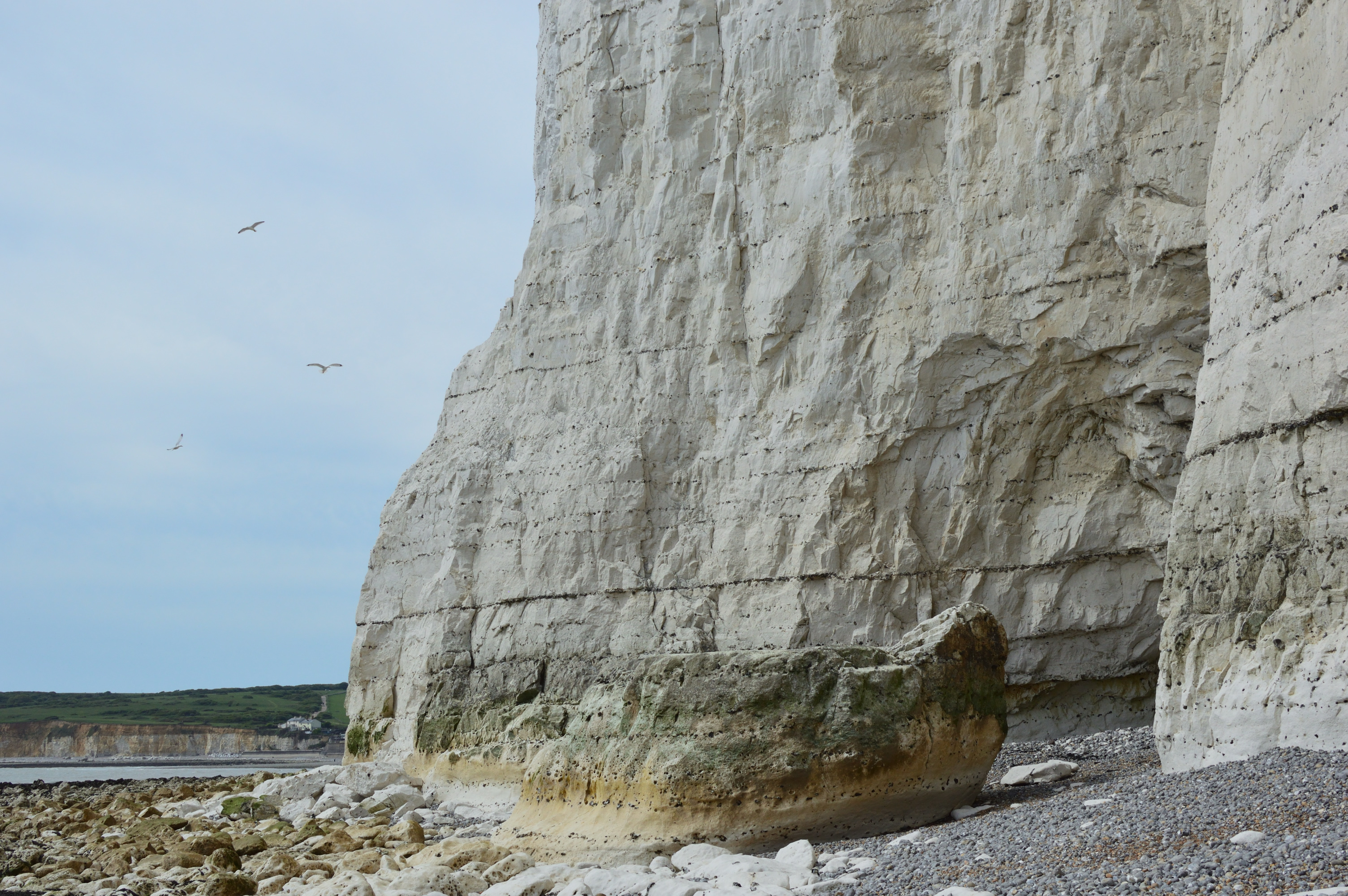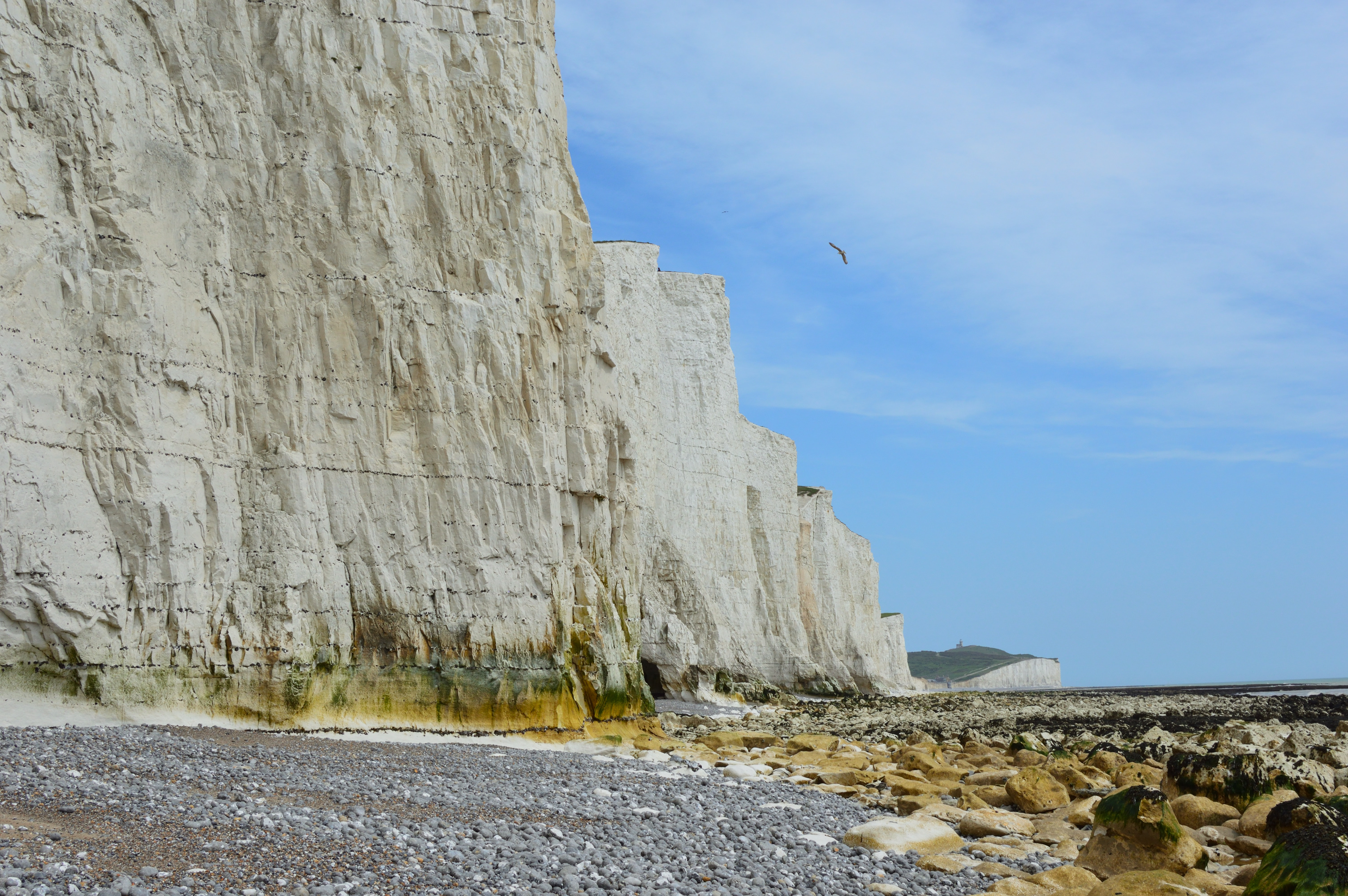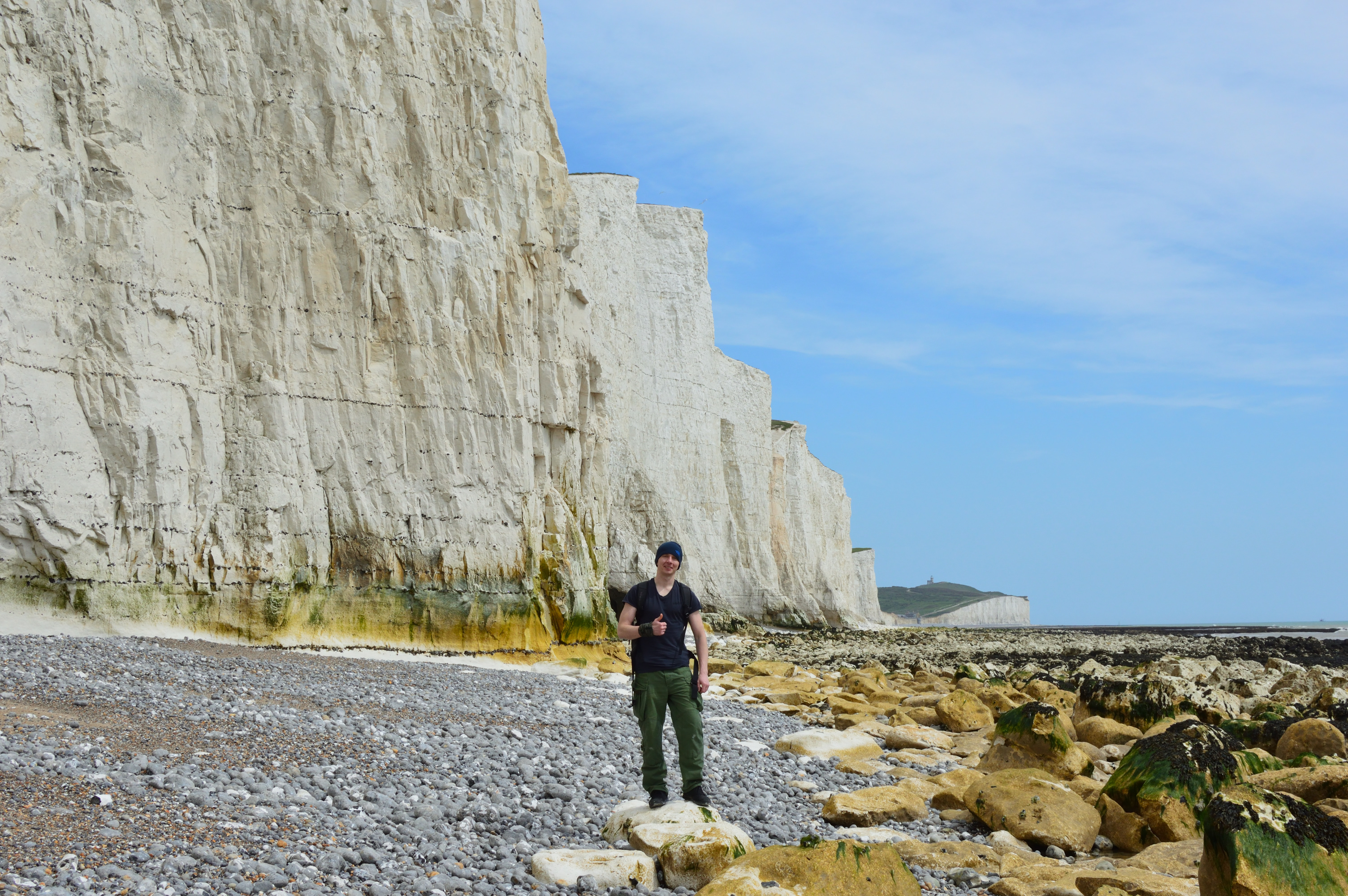 Wczoraj po raz drugi w swoim życiu miałem okazję zwiedzać słynne angielskie klify Seven Sisters. Tym razem pogoda dopisała, czasu było dużo, a morze daleko co umożliwiało bezpieczną eksplorację w głąb klifów bez większego (chyba) ryzyka że się potopimy. Piszę o tym ponieważ poprzednim razem kiedy byłem na tych klifach przypływ przyszedł tak szybko i niespodziewanie, że w kwadrans odciął nam drogę powrotną skutkiem czego ewakuowaliśmy się w wodzie po pas z porywistymi falami.